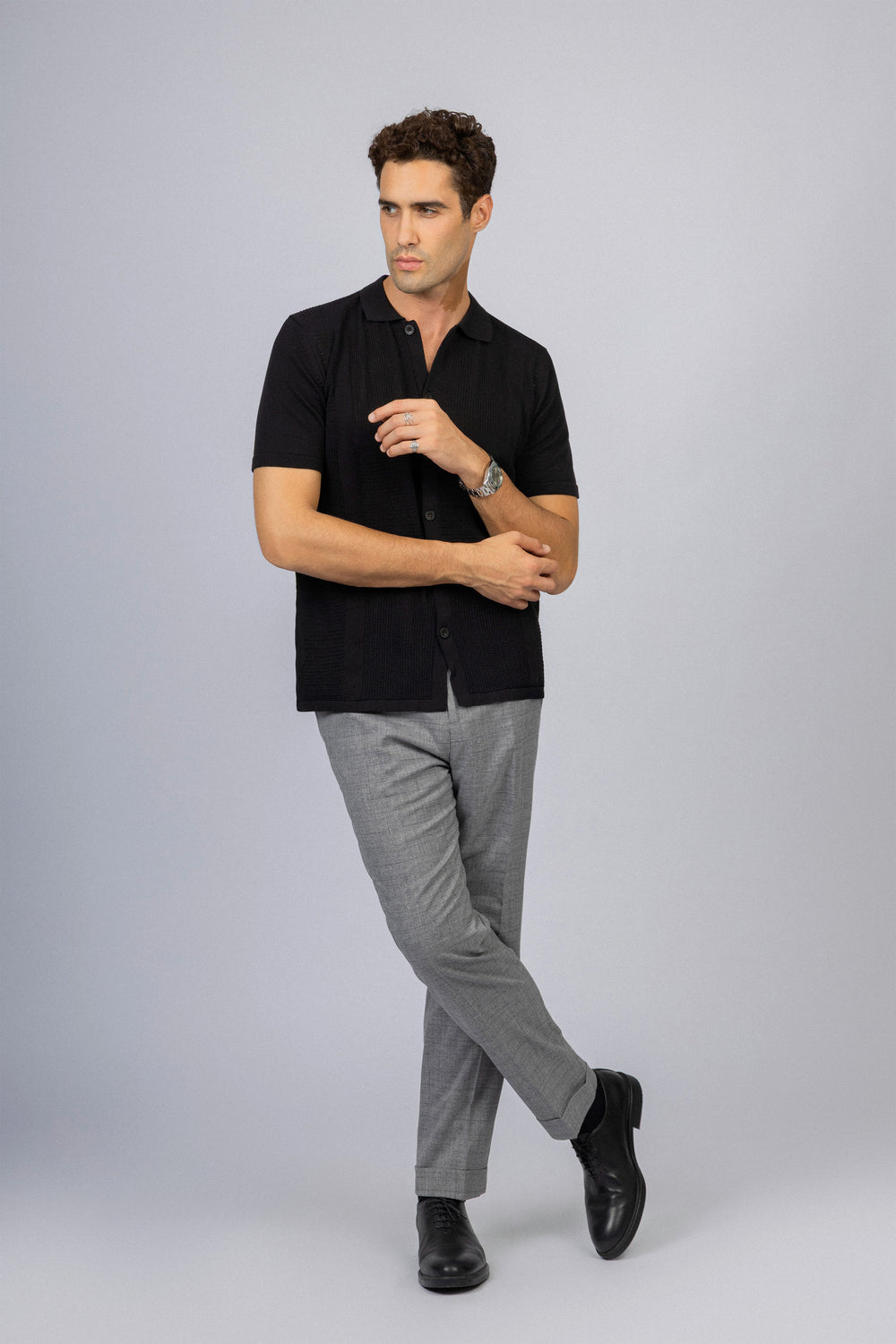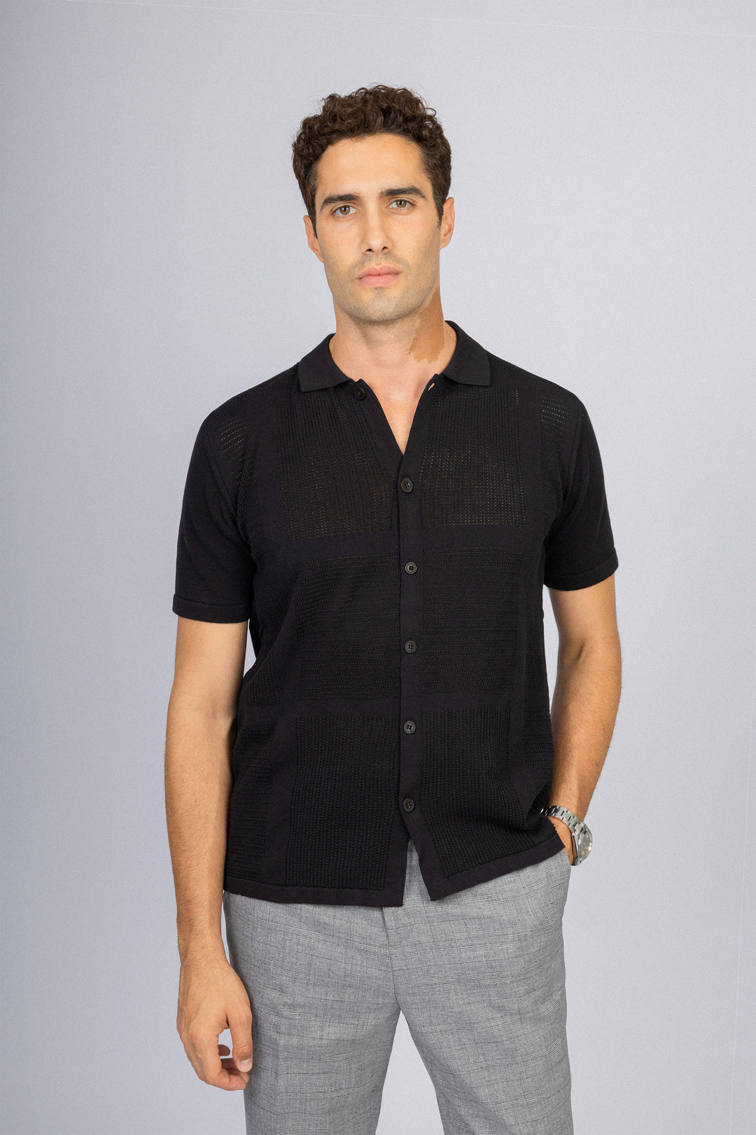 قميص بولو تريكو بلون أزرق فاتح على شكل حرف V