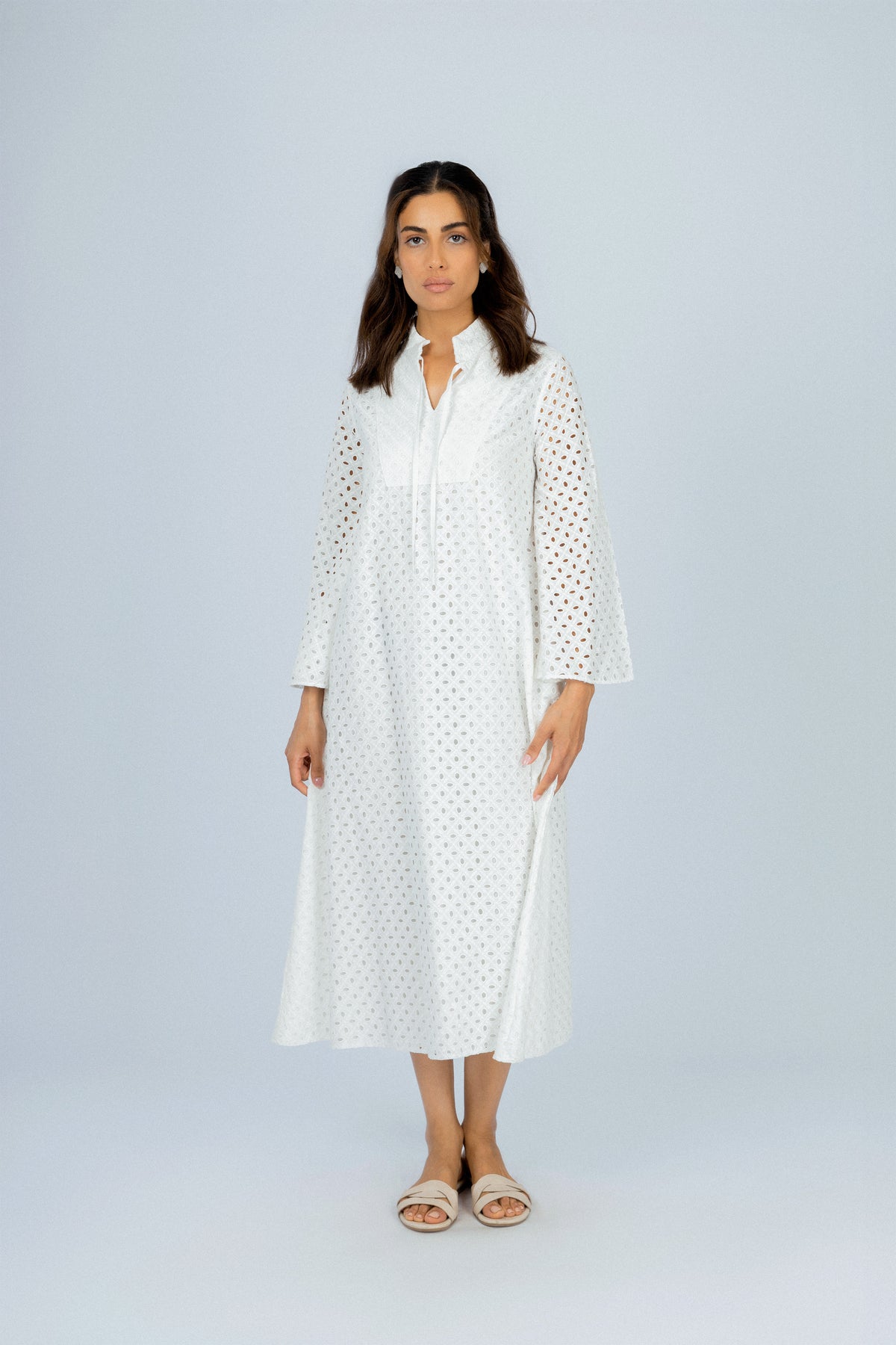 فستان كاجوال أبيض جاكار