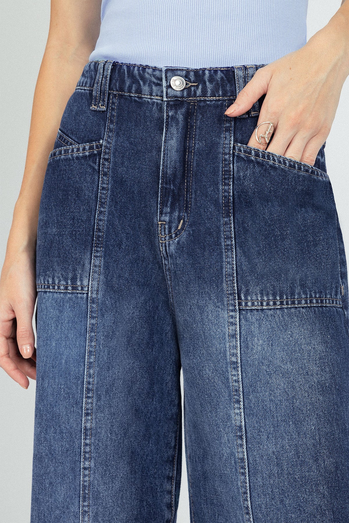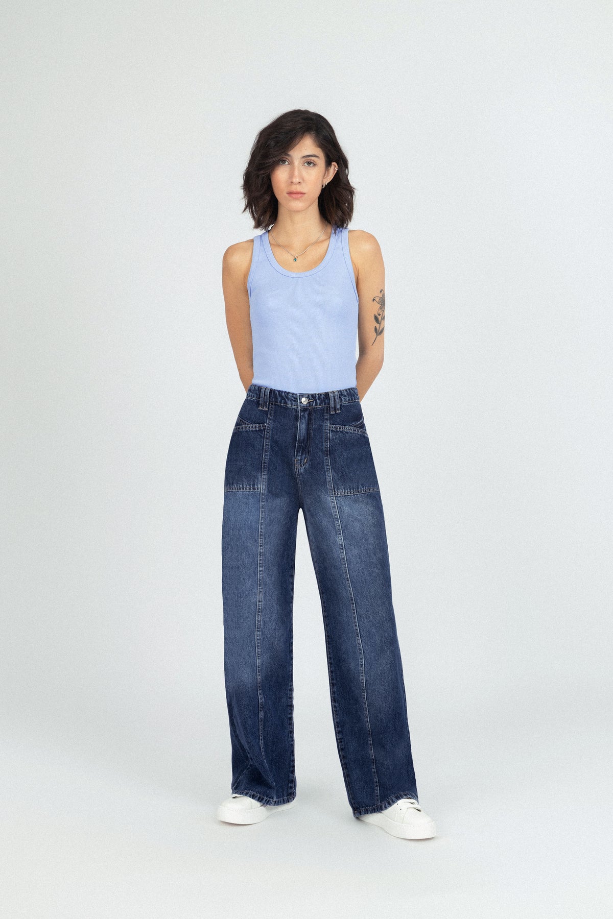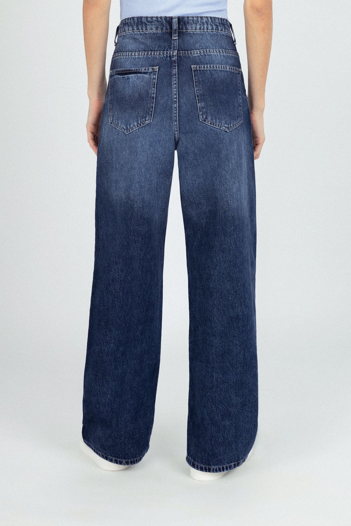 بنطال وايد ليغ بلون أزرق داكن