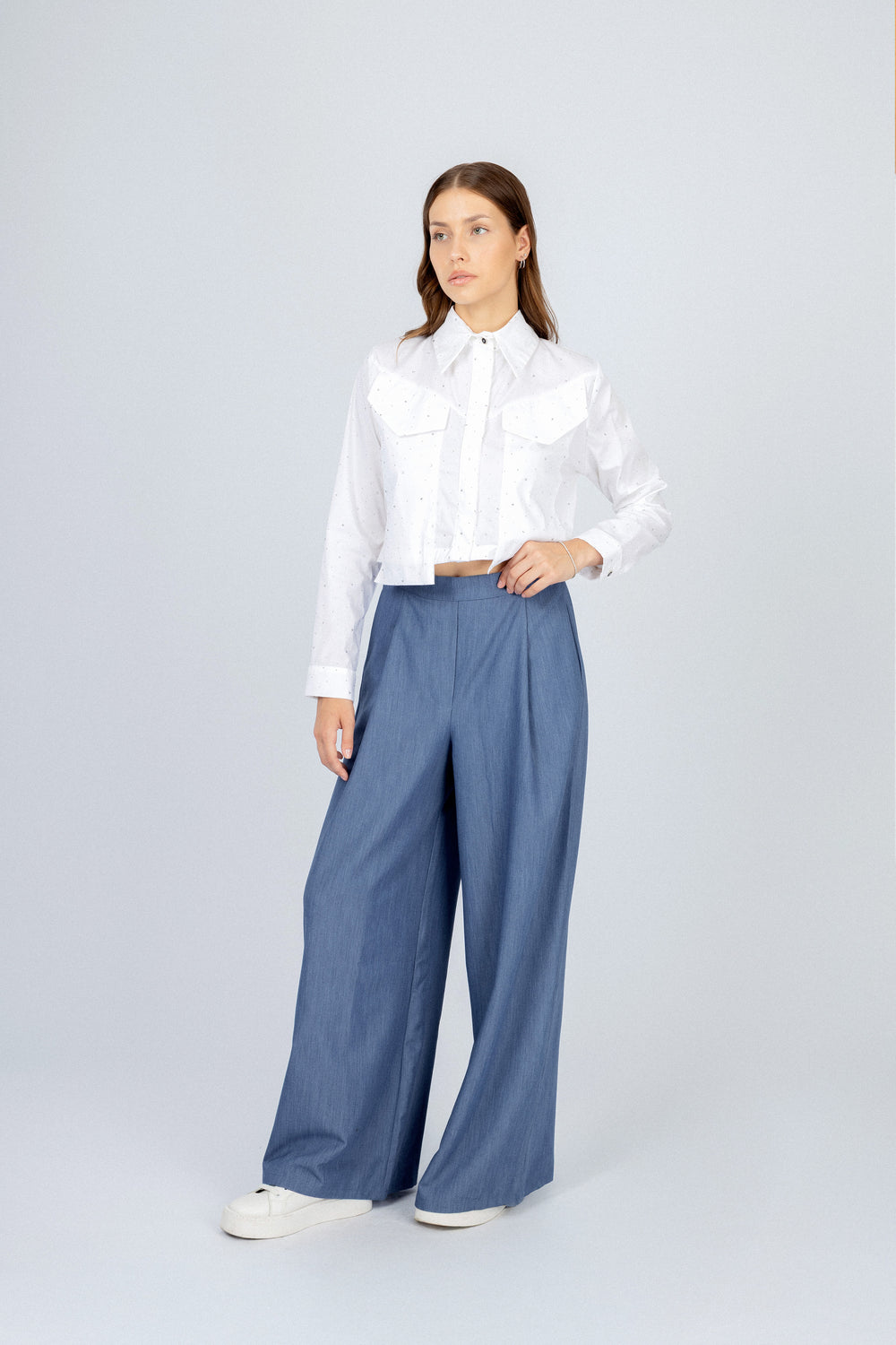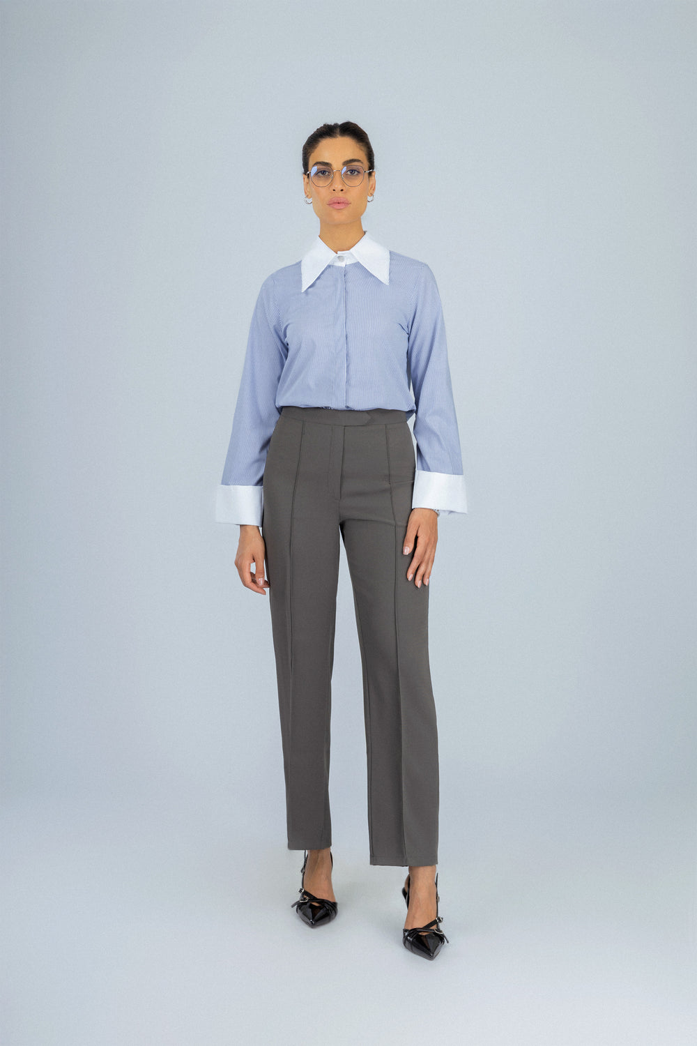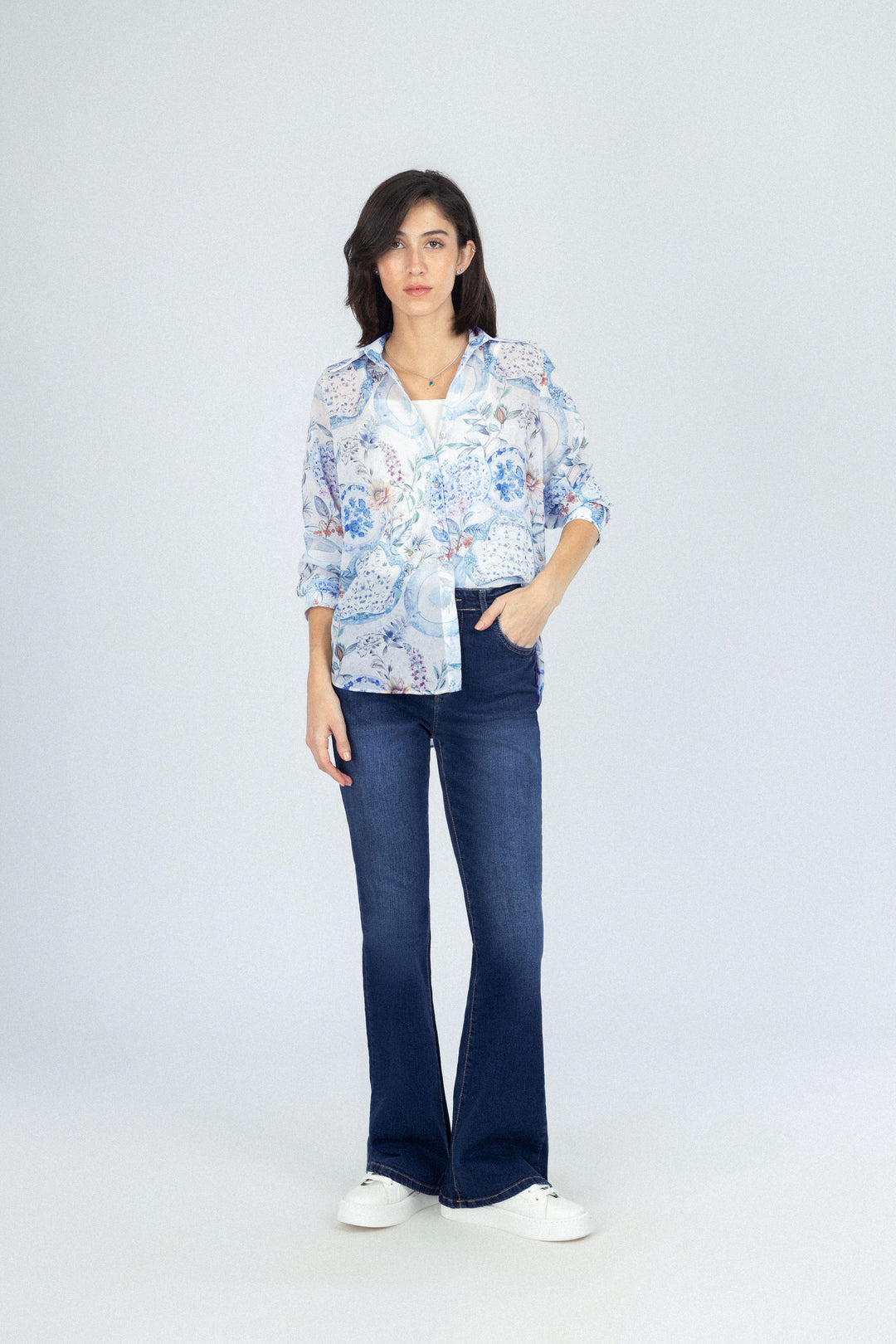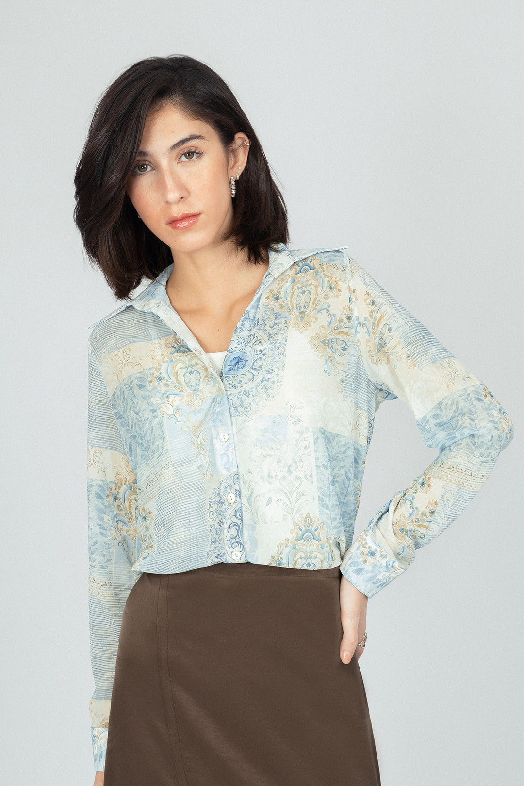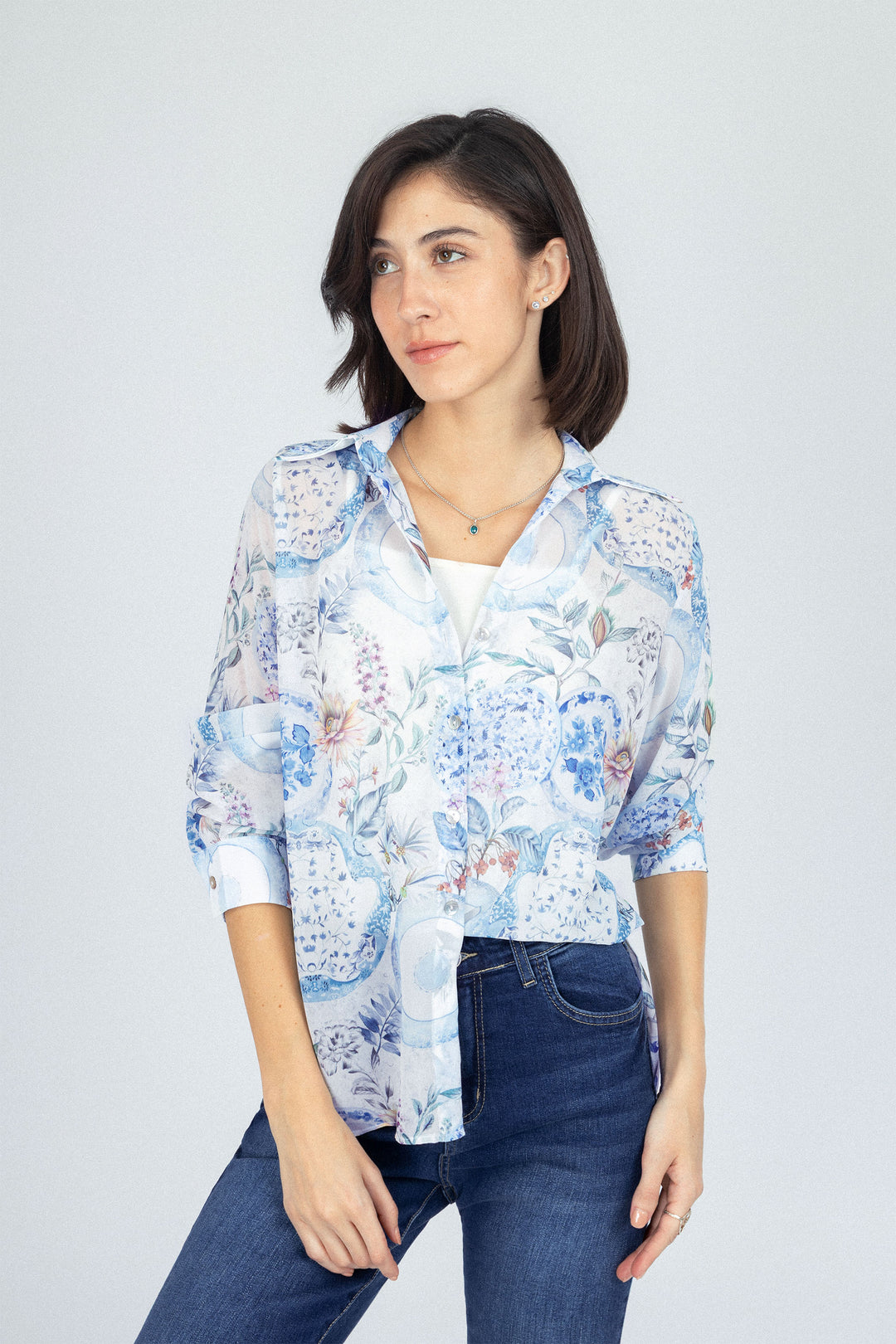 قميص كاجوال من الشيفون بلون أزرق فاتح