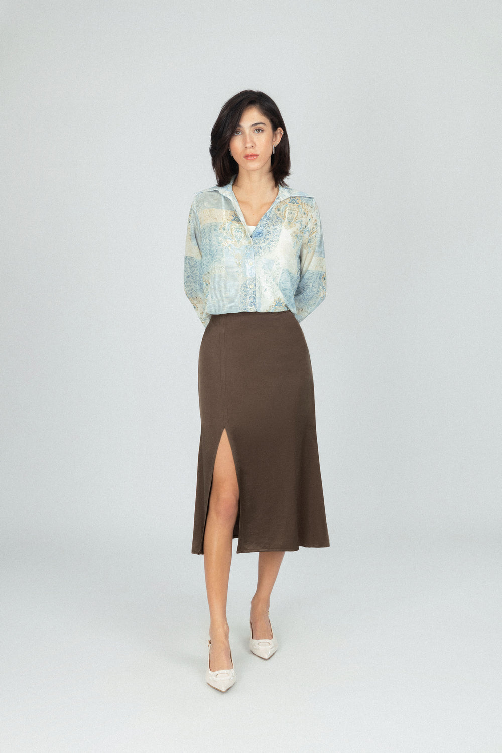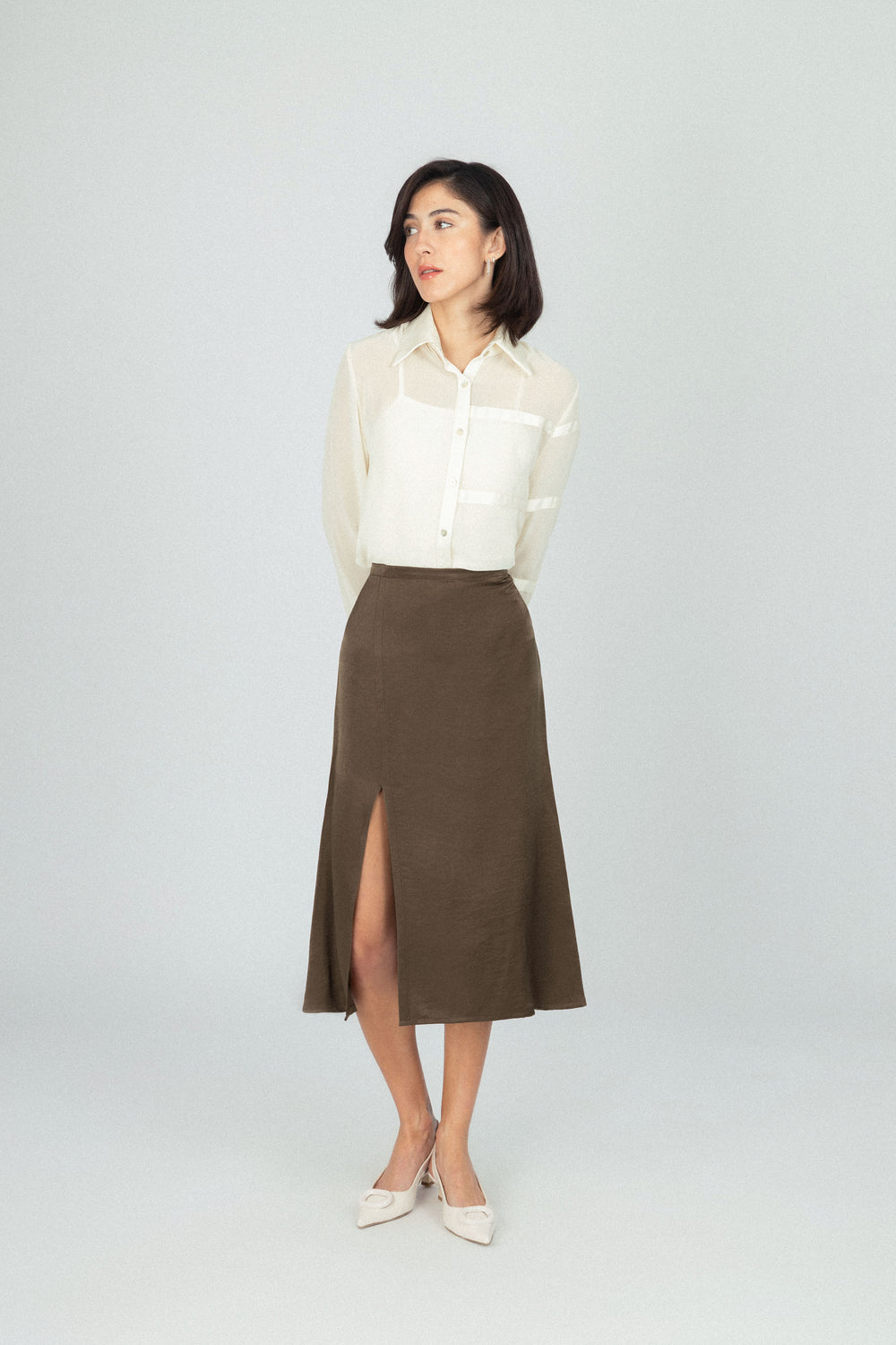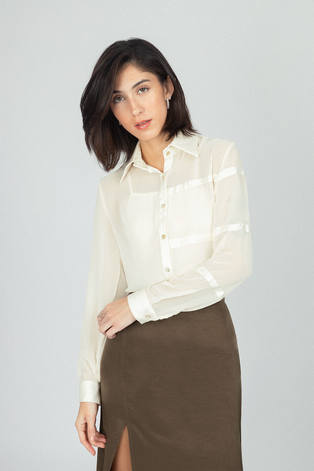 قميص شفاف كلاسيكي من الشيفون بلون الأوف وايت