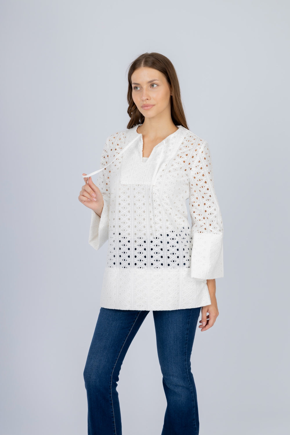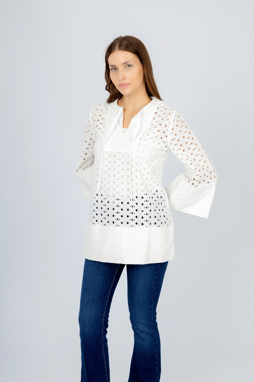 بلوزة بيضاء ذات ثقوب