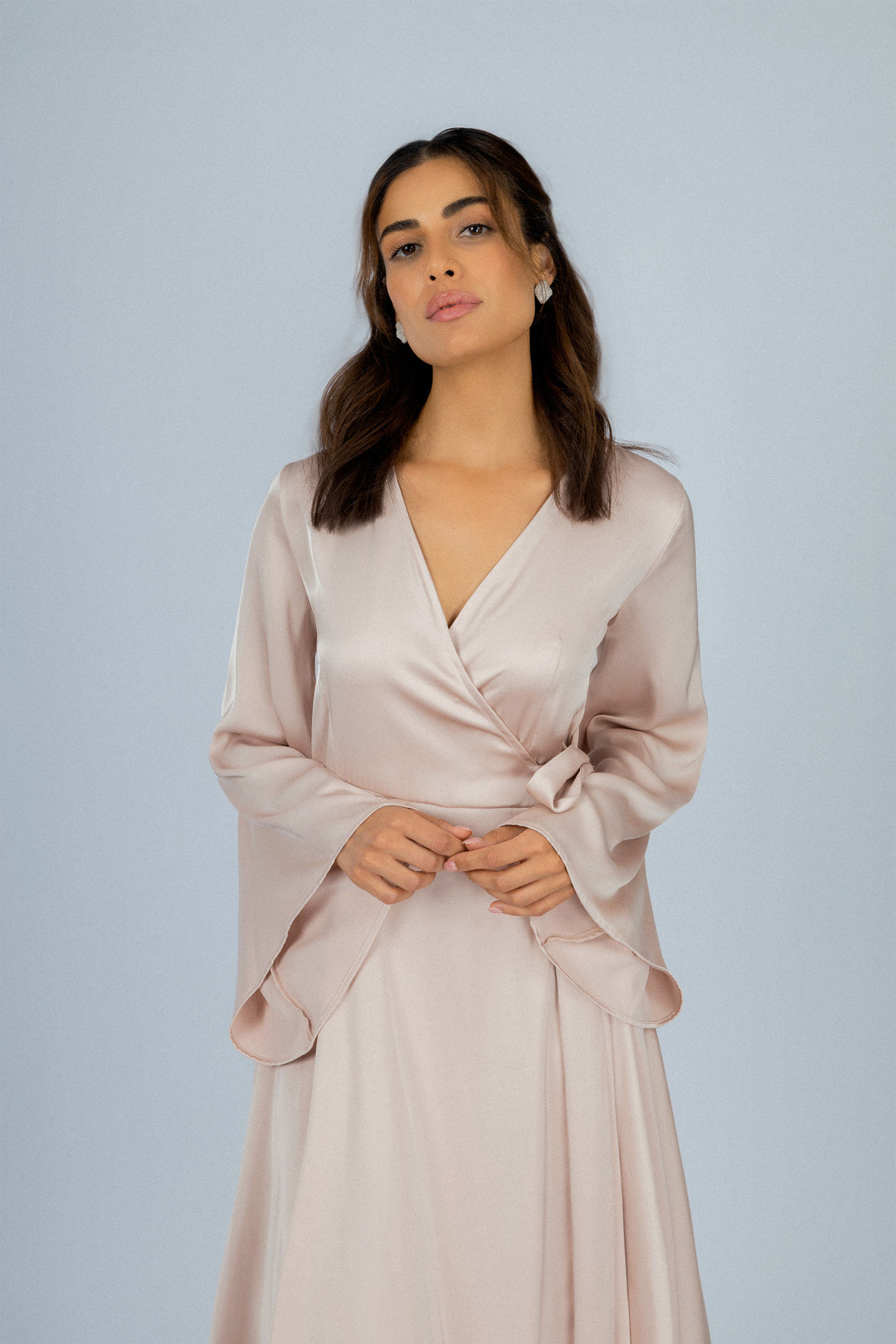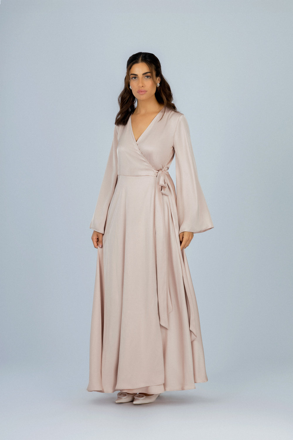 فستان طويل كلاسيكي من الساتان بلون الوردي