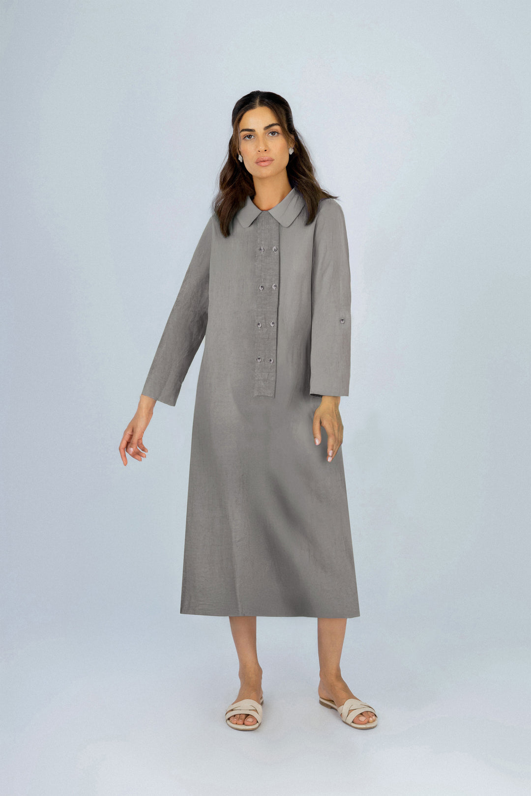 Linen Light Café Midi Shirt Casual Dress