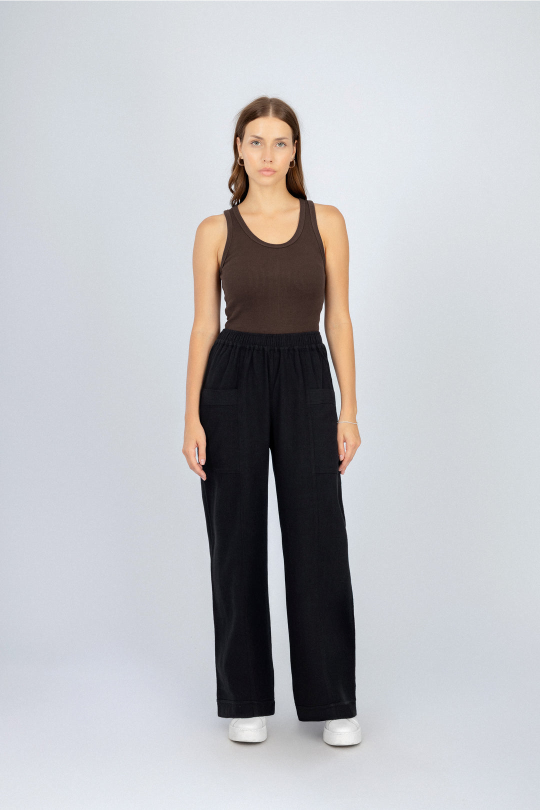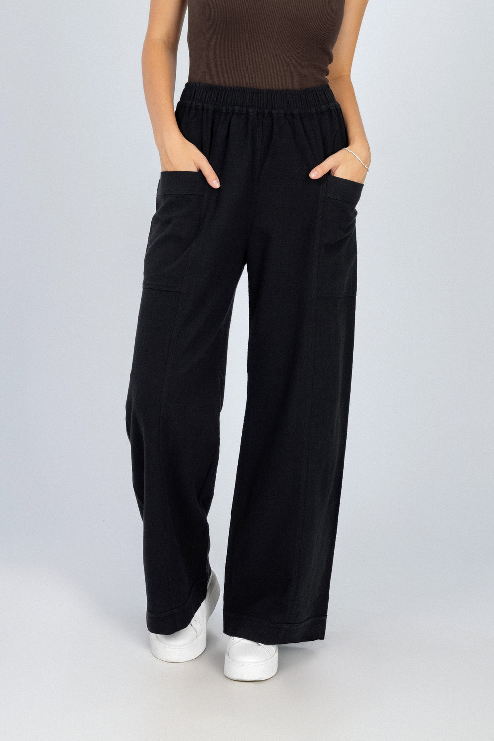 بنطال واسع الساق أسود بمظهر الكتان