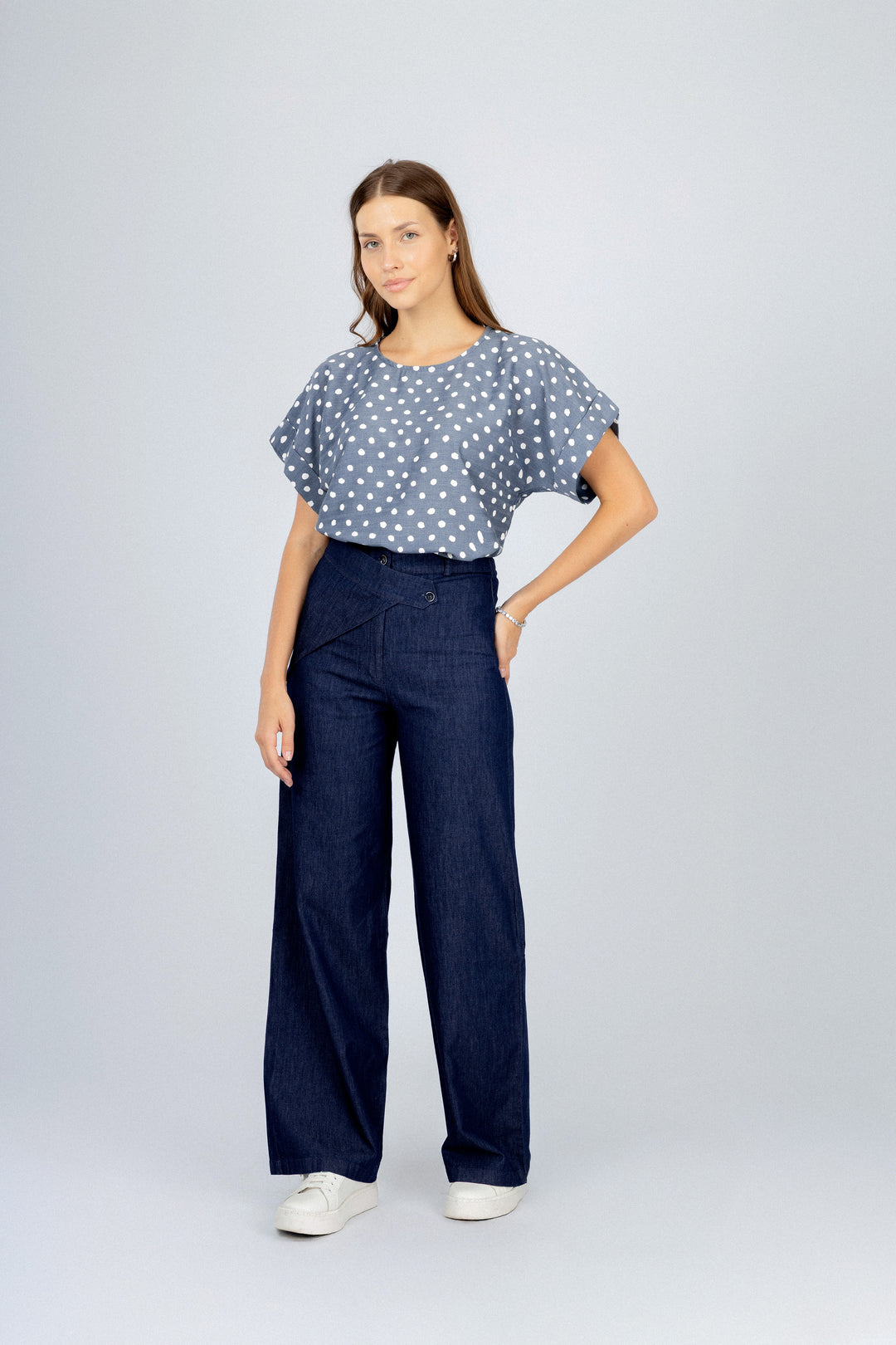 Navy Wide-Leg Overlap Waist Casual Pants