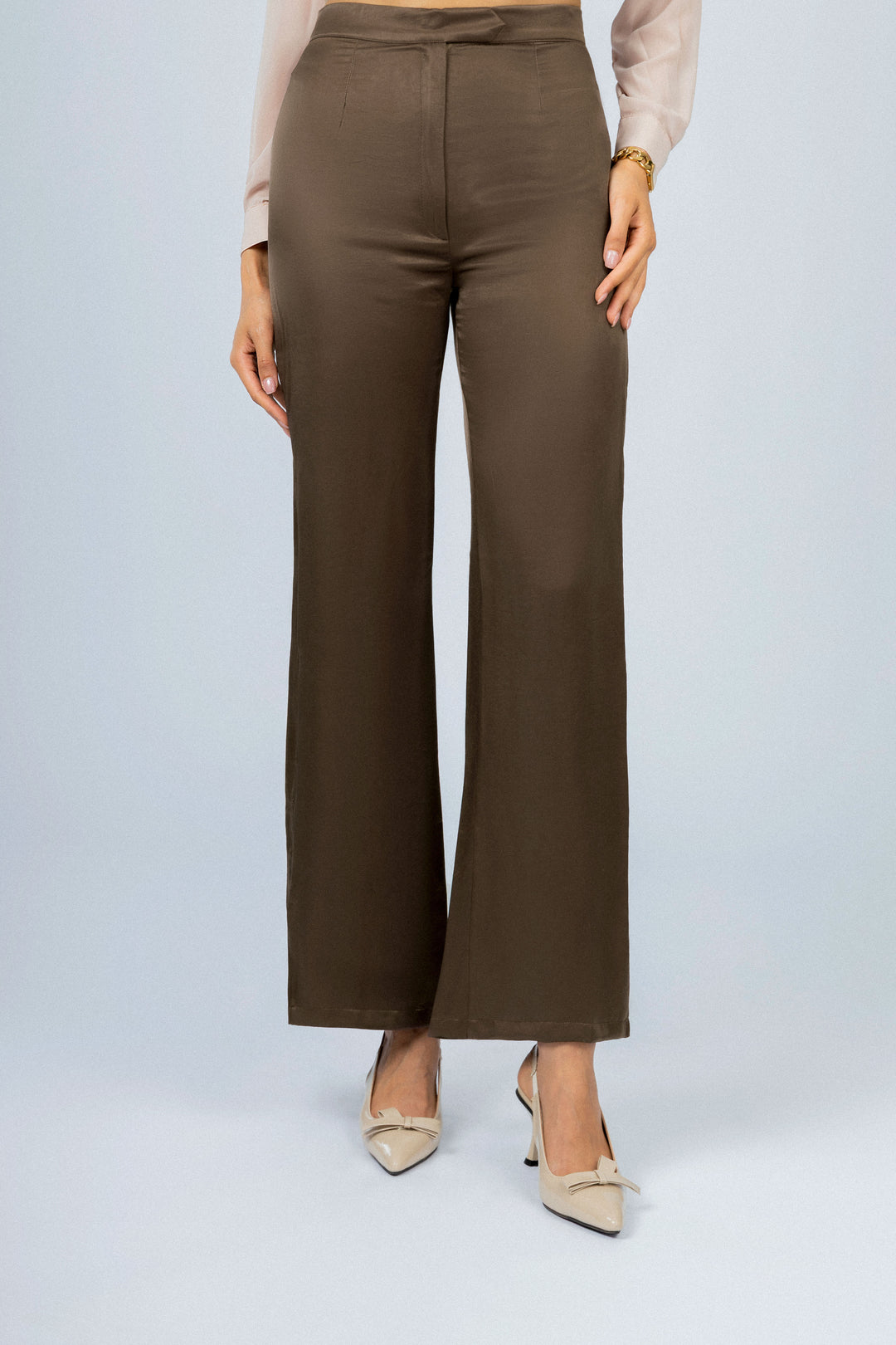 بنطلون نسائي بني كلاسيكي بسحاب جانبي