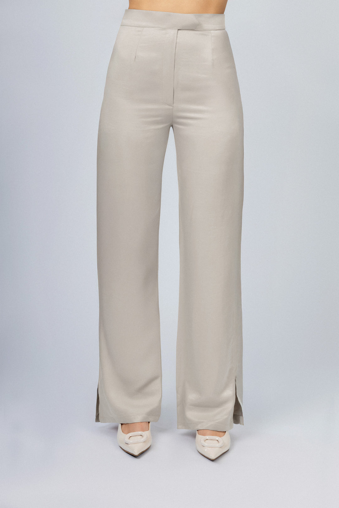 بنطلون جانبي بسحاب رمادي كلاسيكي للنساء