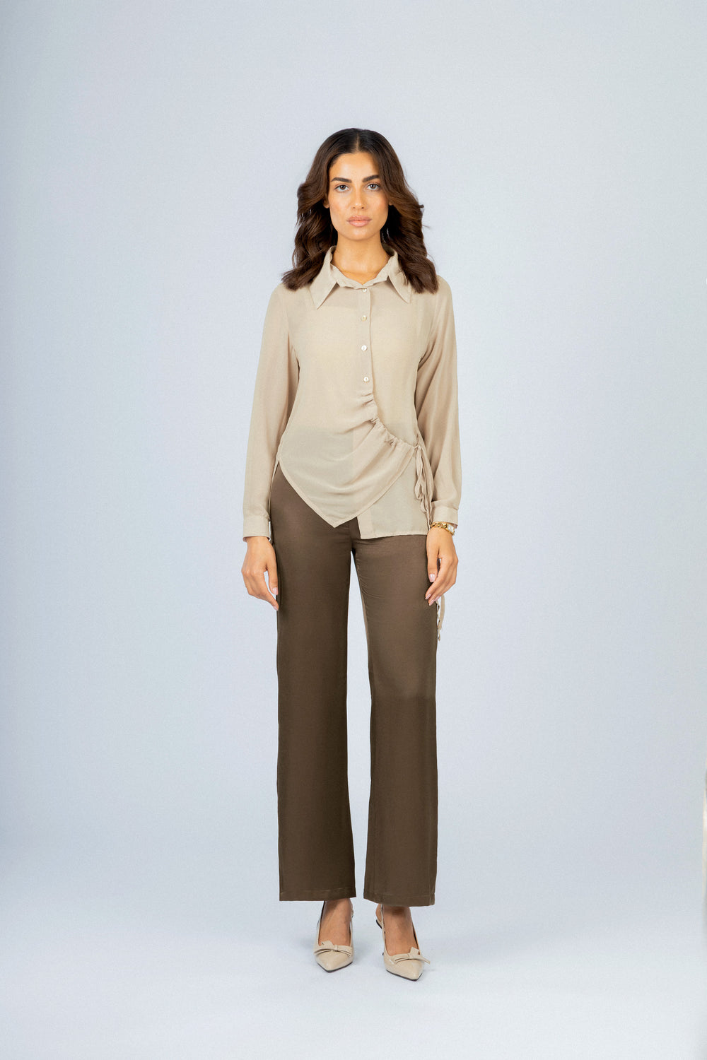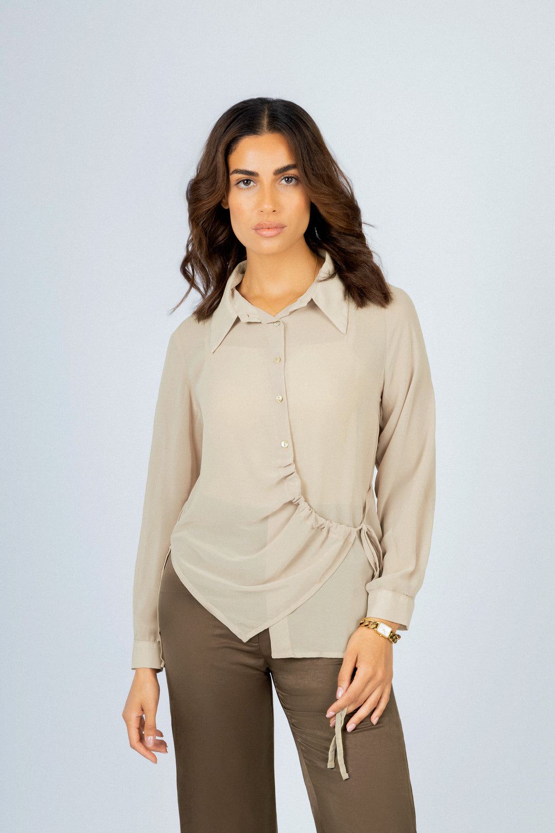 Beige Chiffon Casual Shirt