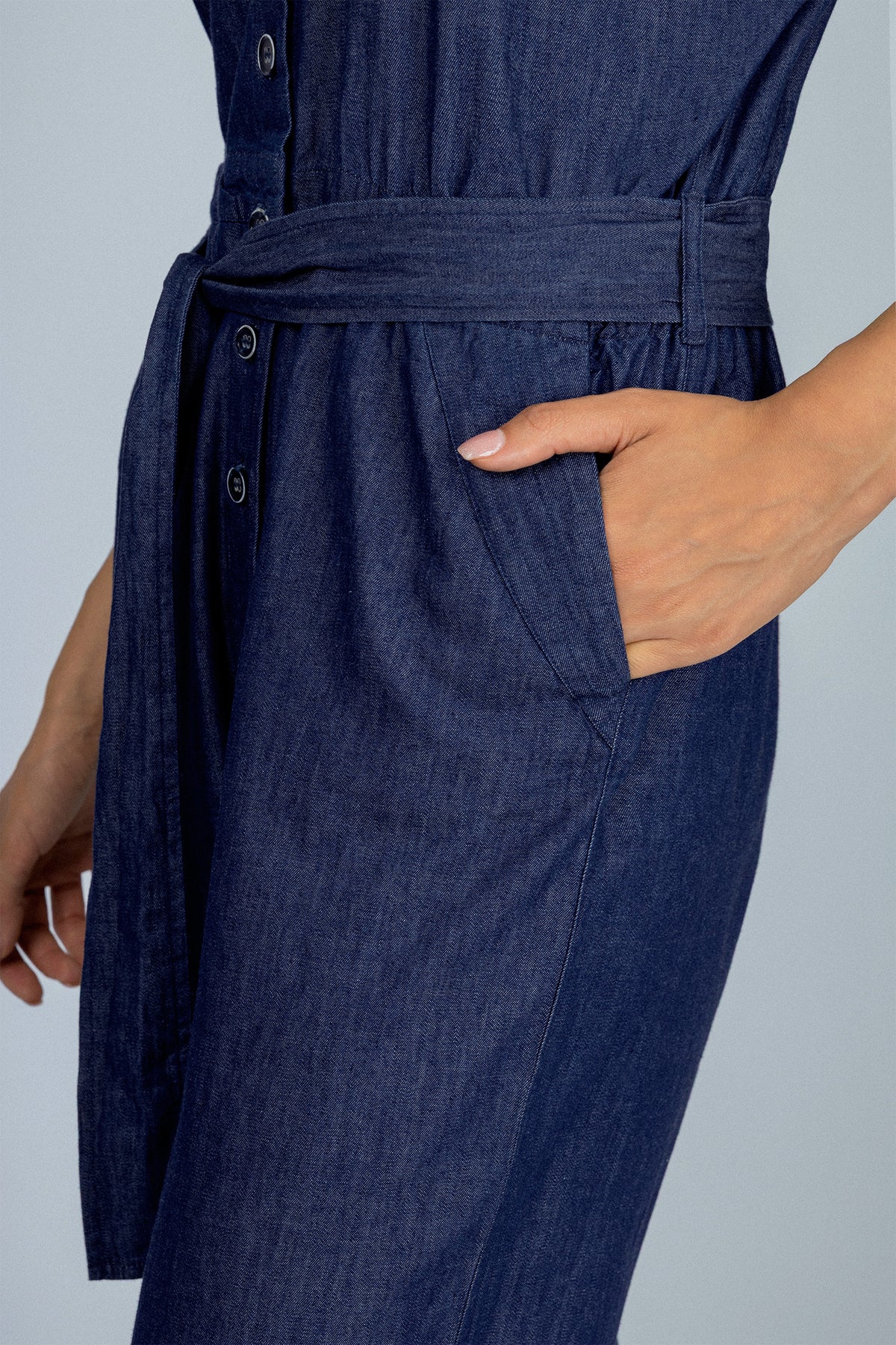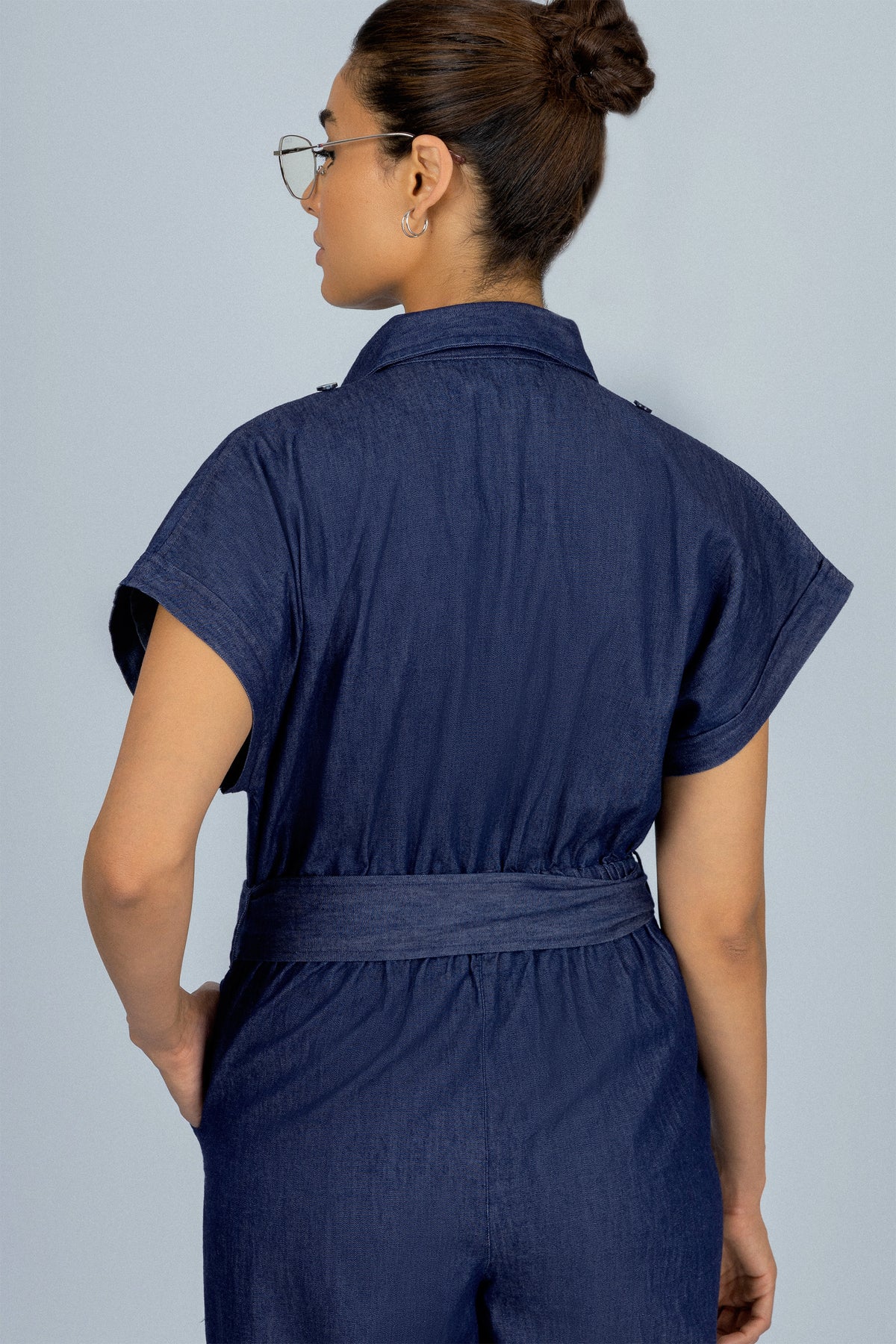 This Button-Front Jumpsuit effortlessly combines style and comfort. Featuring a button-down front, a classic collar, and short sleeves, this jumpsuit offers a chic and relaxed look. The adjustable fabric belt cinches at the waist for a flattering silhouette, while the wide-leg design ensures ease of movement and comfort.